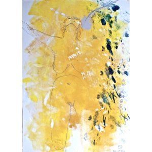 In parallel, she paints, signing ED. She qualifies herself an “expressionist”, focusing on emotions, matter and spirituality. For a long time, she has favoured paper as it allows scratches and relates to writing. Today, she likes to draw words on her paintings and works also on canvas, either with spray paint or oil, in a spiritual quest of joy, peace and innnovation in mixing things (writing, matter, technics, mediam)