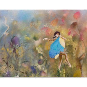 "La solitude merveilleuse" , série "FÉES" , bombe et acrylique sur toile, 30x40, 2024