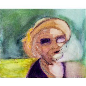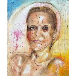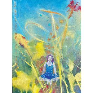 "La solitude merveilleuse" , série "FÉES" , bombe et acrylique sur toile, 30x40, 2024
